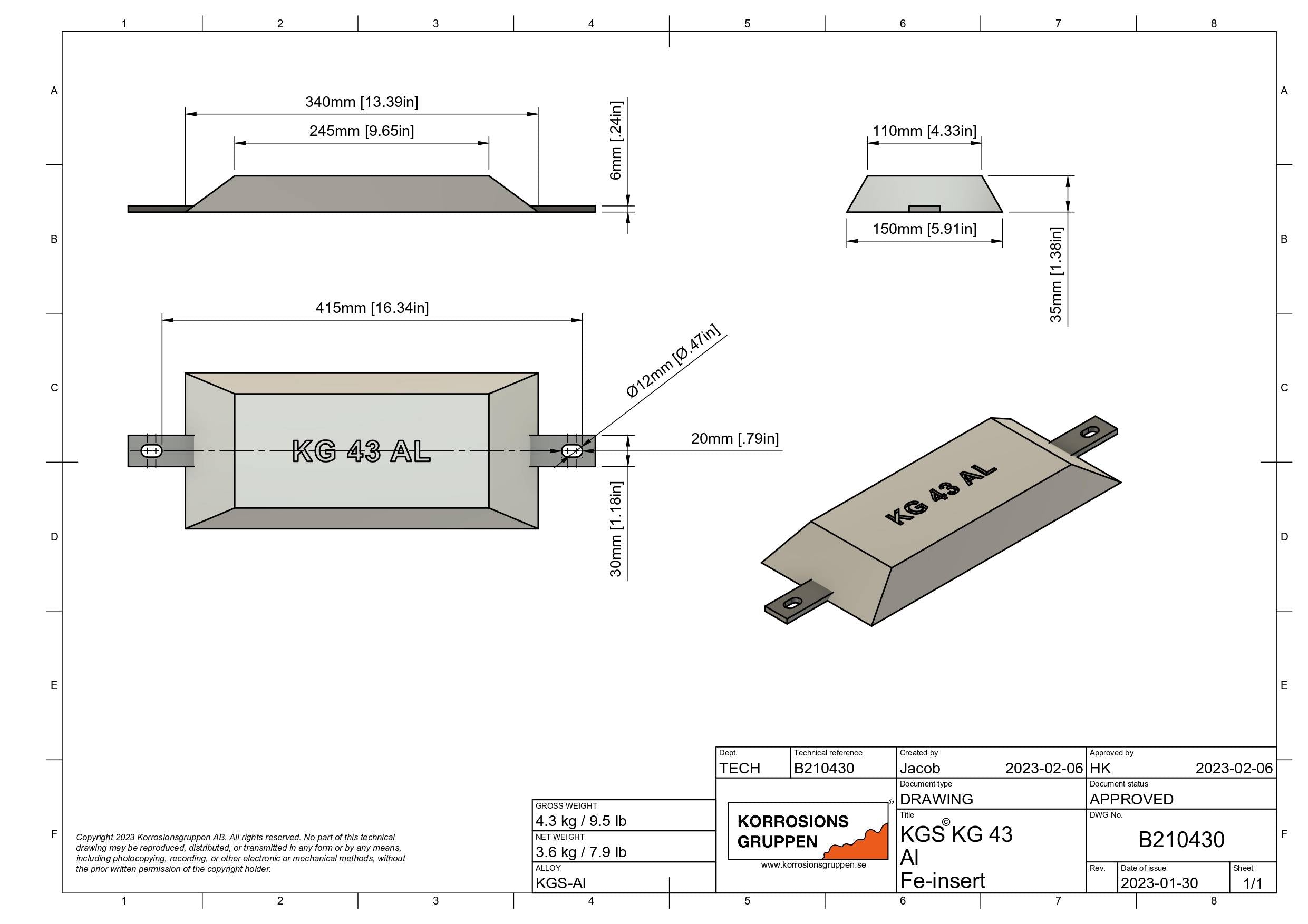 Aluminum anode type 43 - 13* 5.9 * 1.4inch