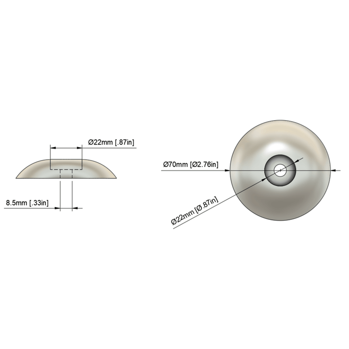 Magnesium anode rudder - Ø = 2.75in/70mm, 0.13Lb/0.06kg, 2-PACK