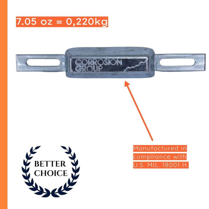 Zinc hull/rudder anode 0.55Lb Corrosion Group, 3.07*1.14*0.74inch (6.49), hole 0.251*1.18inch