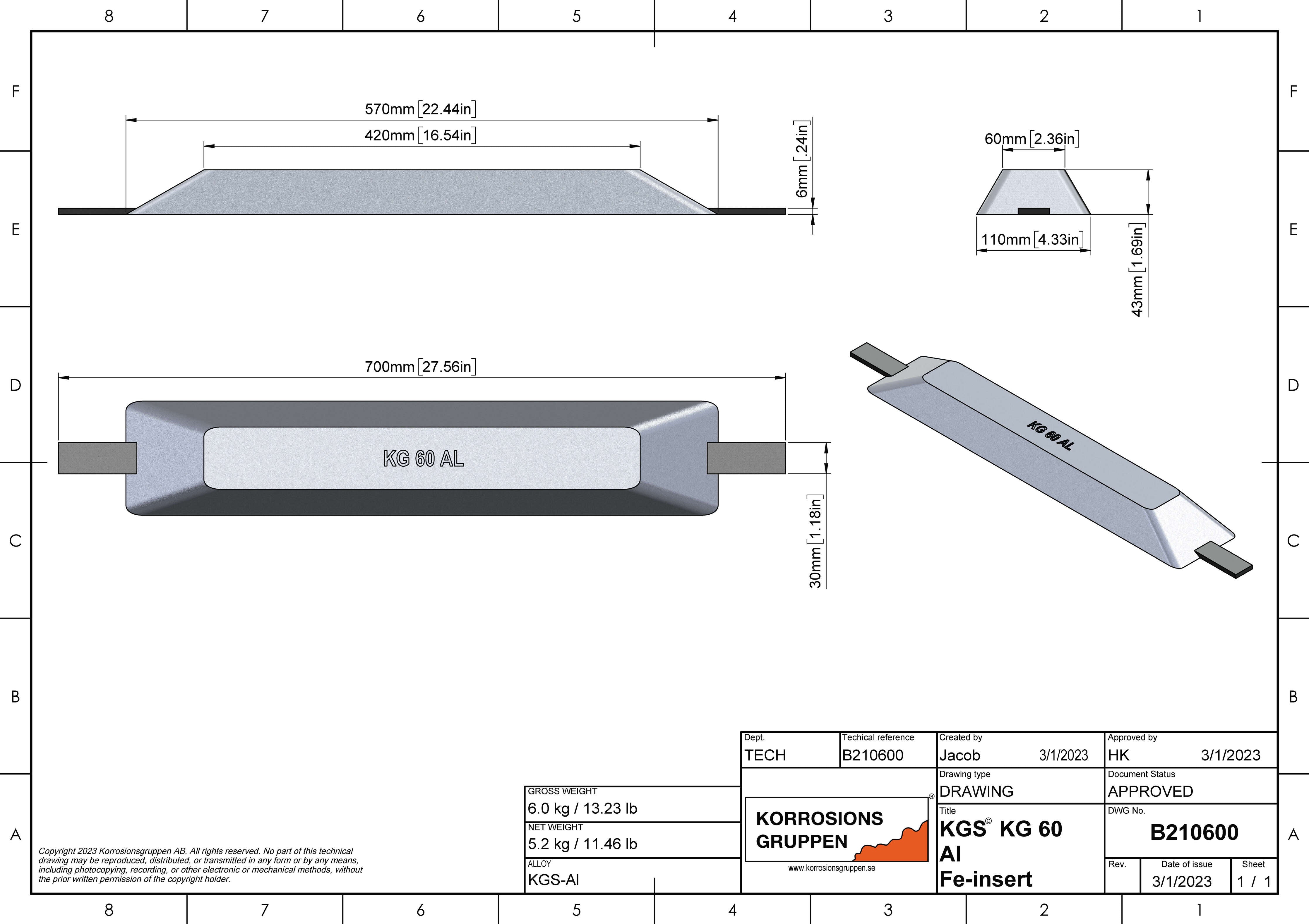 Ánodo de aluminio TIPO 60 - 570*110*43